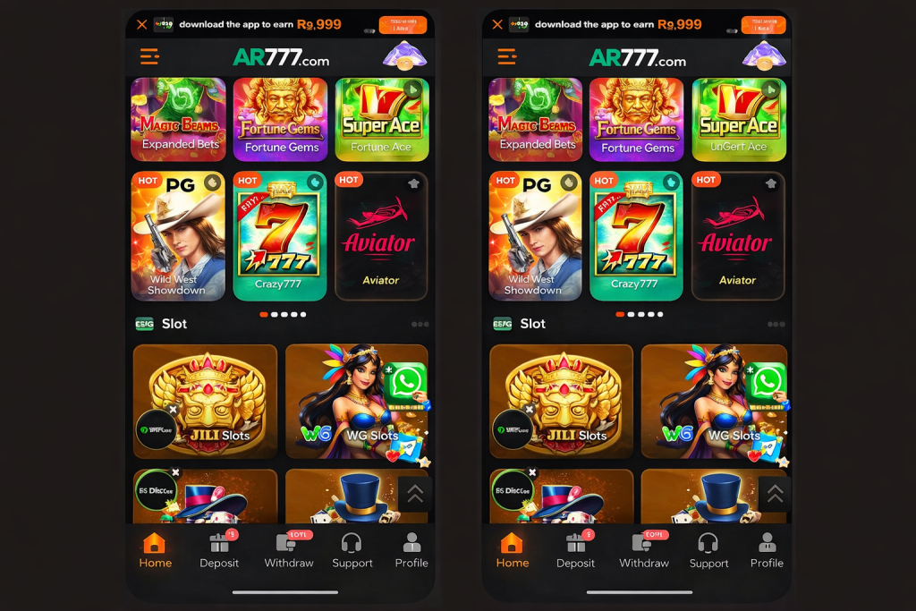 AR777 Game App functions as a multi game mobile platform where several digital games appear inside one application. After installation, users open the app and view the main dashboard. Game options appear through icons arranged in categories.